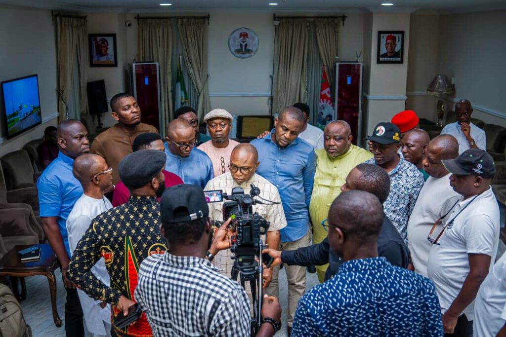 Addressing the press on Monday, 28th October after a closed-door meeting with the Governor which had members elected on the platforms of all political parties in the current 8th Assembly at Umuehim Nvosi, country home of the Governor in Isiala Ngwa South Local Government Area, the Speaker of Abia State House of Assembly Rt. Hon. Emmanuel Emeruwa disclosed that they came to show solidarity to the Governor for his good programmes and policies in the State, commend and support him for the conduct of the November 2nd LGA election.