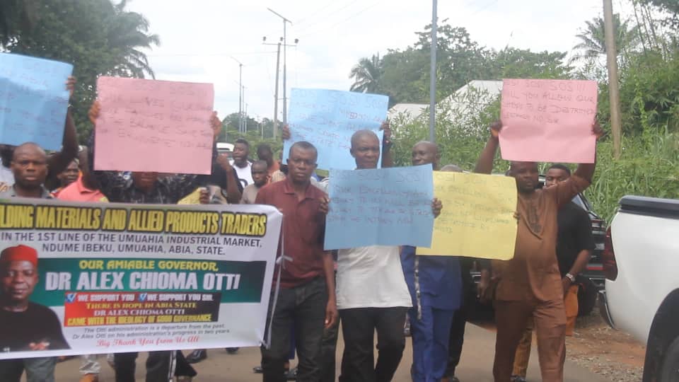 Tension is brewing at the Umuahia Industrial Market, Ahiaeke Ndume, as traders under the aegis of First Line Timber Shade Section staged a peaceful protest at the country home of Governor Alex Otti in Nvosi, Isialangwa South Local Government Area, to draw his attention to alleged threats by members of the Umuchukwu community Ihie Ndume, to set ablaze over 200 lock-up shops in the market.